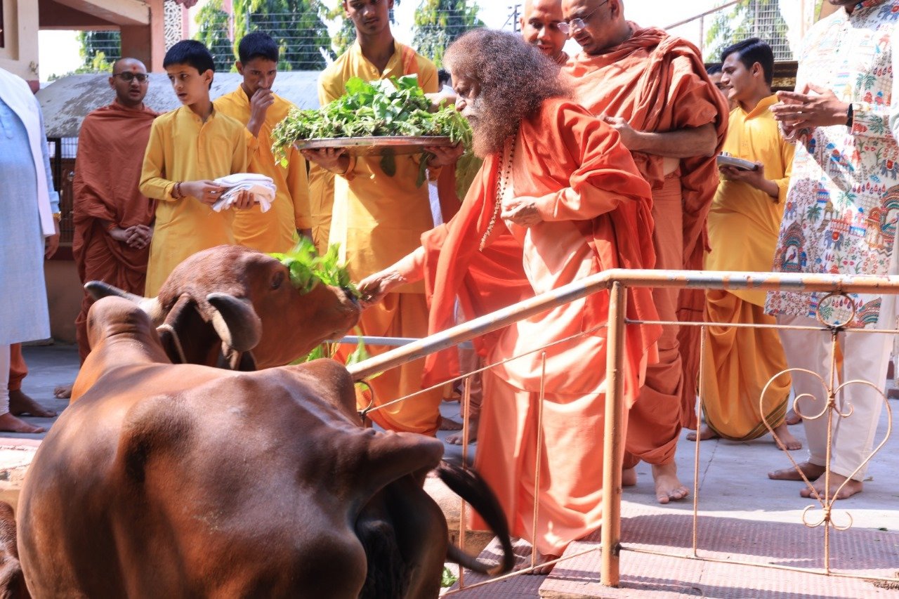 पूज्य स्वामी जी, पूज्य साध्वी जी और पूज्य संतों ने किया गौपूजन*