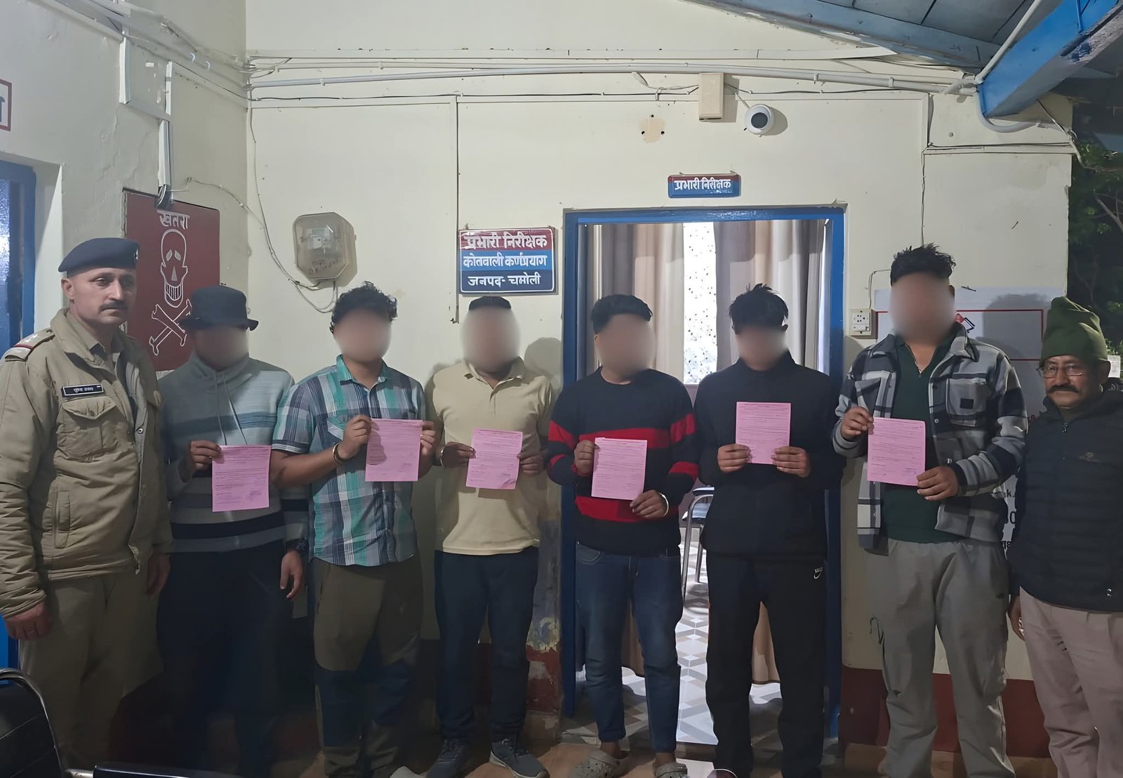इसके बावजूद उक्त व्यक्ति द्वारा अपने साथियों को बुलाकर वाहन से उनका पीछा किया गया और कालेश्वर में उन्हें रोककर उनके साथ झगड़ा-फसाद किया गया। इतना ही नहीं,आरोपियों द्वारा पुनः पीछा करते हुए सिमली बैंड के पास शिकायतकर्ता व उसके साथियों को रोककर मारपीट,अभद्रता करते हुए उनके हेलमेट व मोटरसाइकिलों को क्षतिग्रस्त किया गया। घटना की सूचना मिलते ही चौकी सिमली पर तैनात पुलिस कर्मियों द्वारा त्वरित कार्रवाई करते हुए मौके पर पहुंचकर स्थिति को नियंत्रण में लिया गया तथा मारपीट व उत्पात करने वाले सभी 06 आरोपियों को मौके से ही पकड़कर कोतवाली कर्णप्रयाग लाया गया।