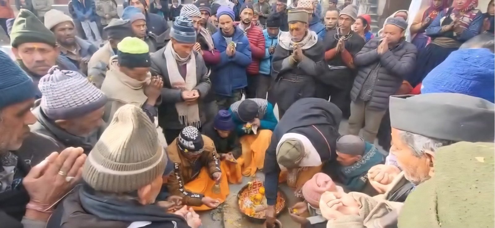 बर्फवारी और बारिश को वाण के ग्रामीणों ने लाटू देवता से मांगी मन्नत।